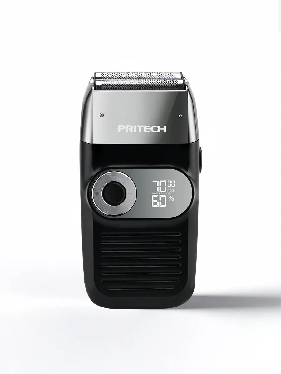 Pritech electric Foil and Bald shaver comes with beard trimmer and hair bald clipper.To meet your shaving needs, it can also meet your styling needs. First use a pop trimmer to shave the hair short, and then combine it with the use of a foil razor head for better results.