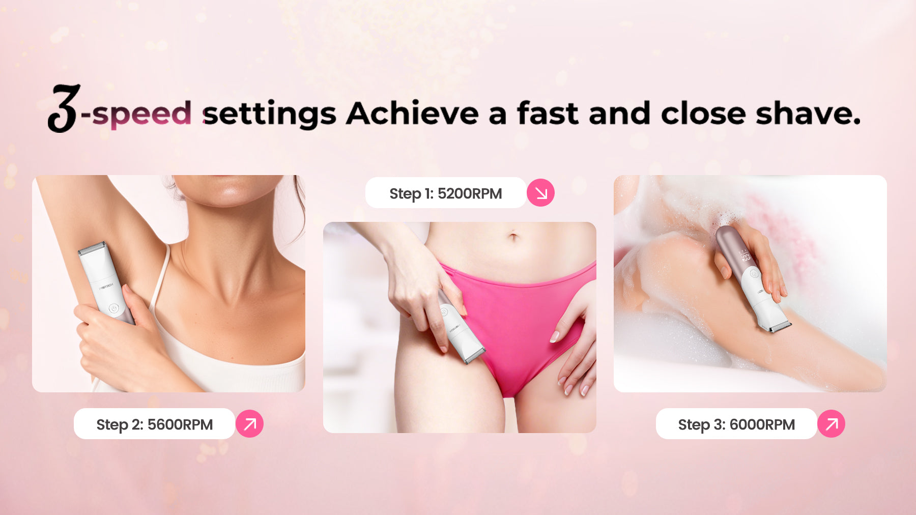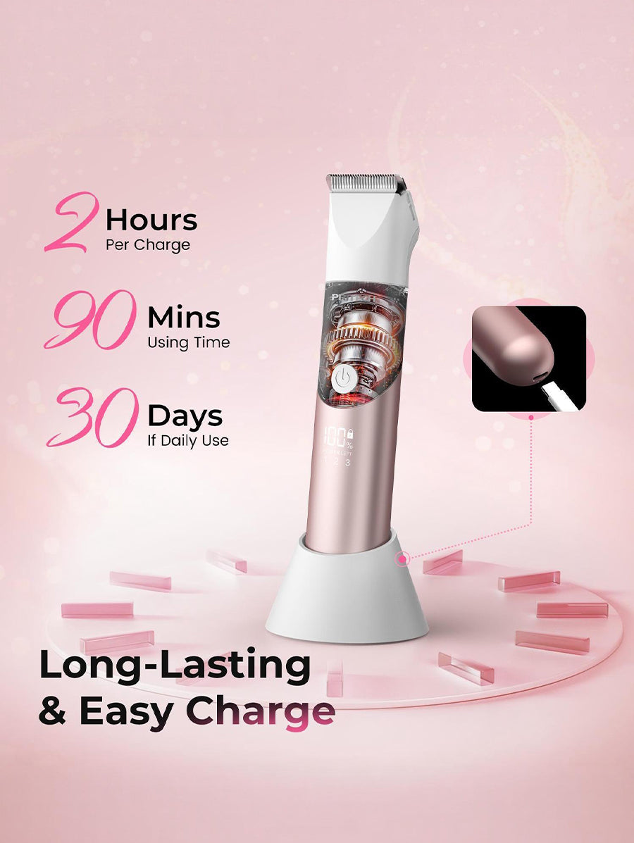 Easily switch between 3 speed levels to suit different grooming needs. The digital display shows battery level and speed in real-time, keeping you in full control