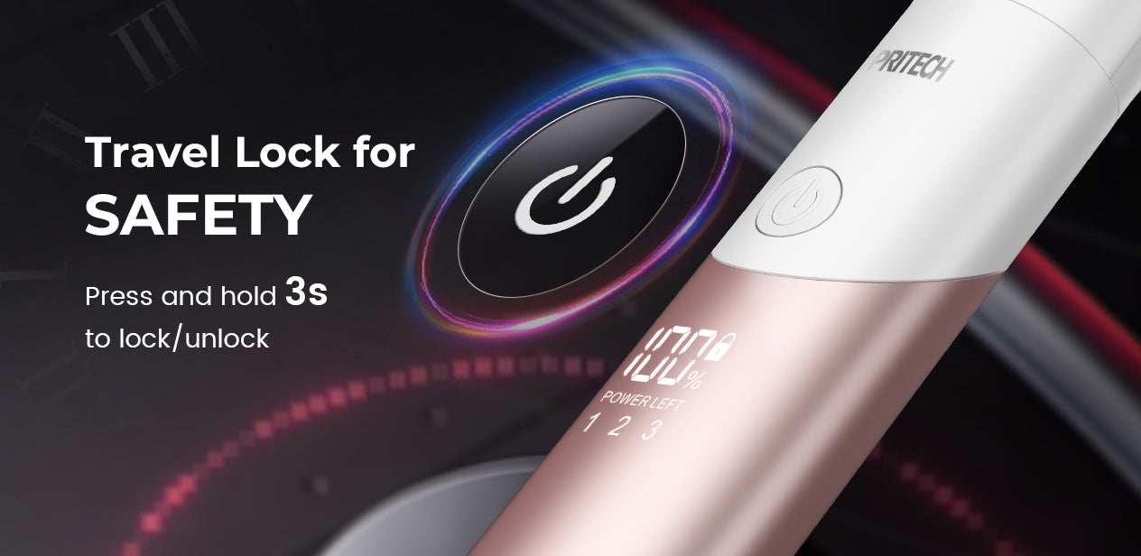 Equipped with a safety lock to prevent accidental activation during travel. Simply press and hold to lock/unlock, ensuring safe and secure storage