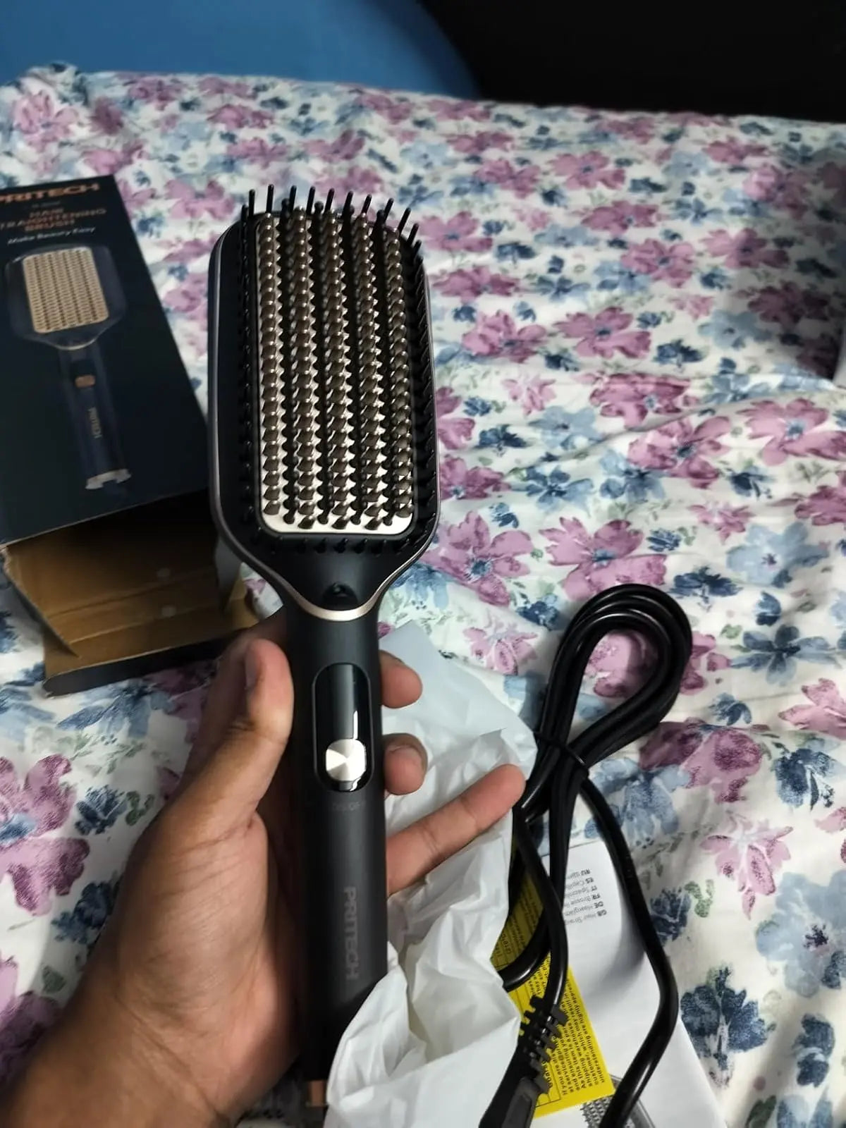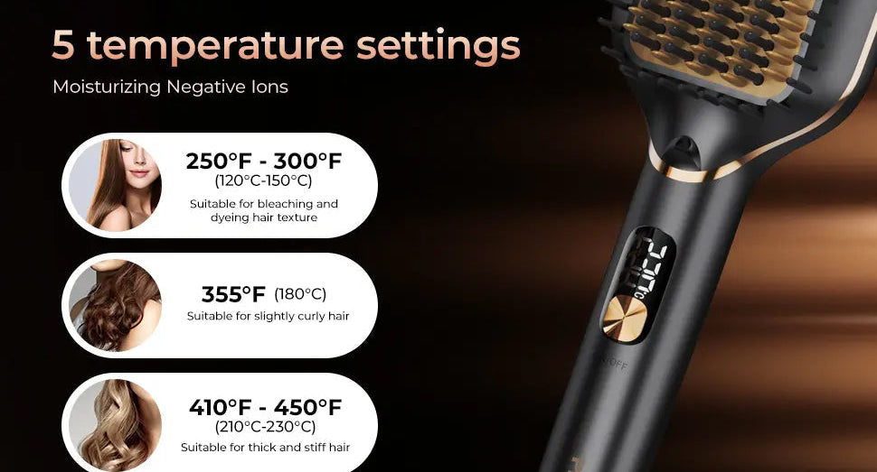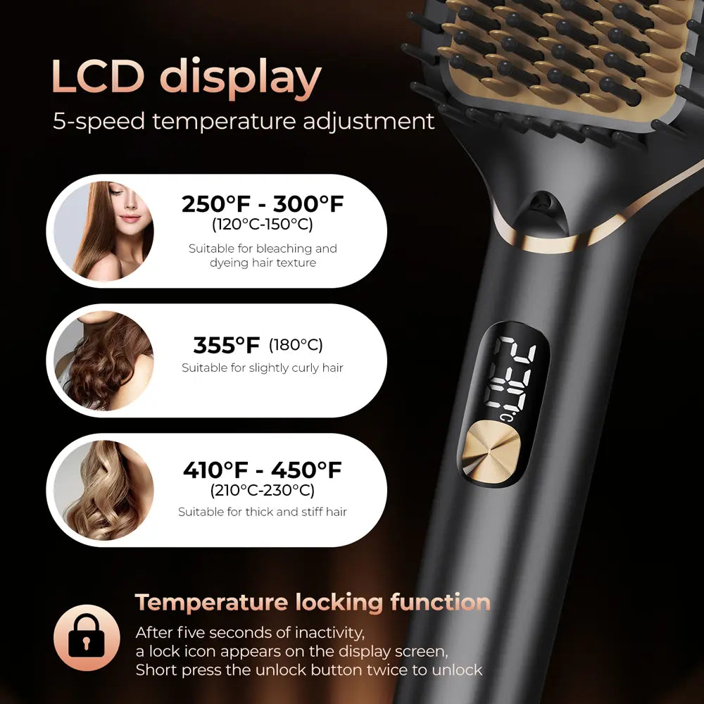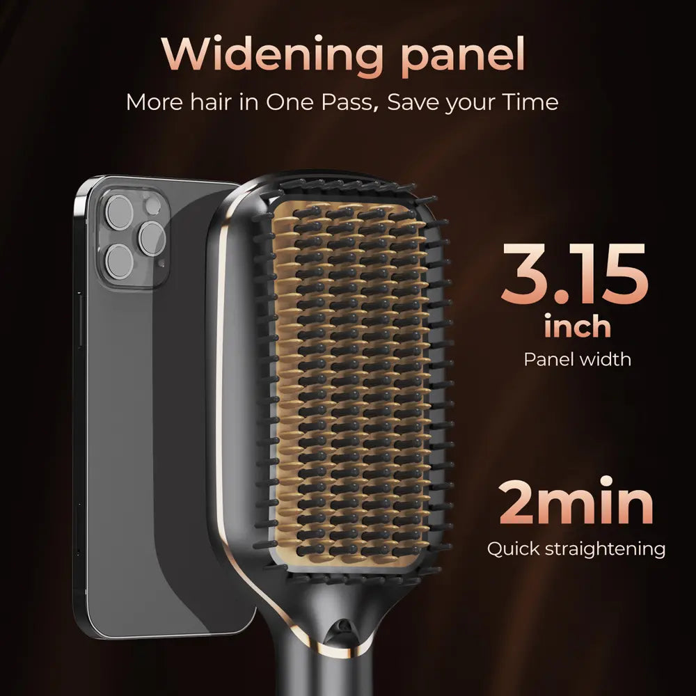 This straightening brush features built-in ionic emitters that release negative ions during use. These ions protect your hair from static electricity, keeping it shiny and healthy.