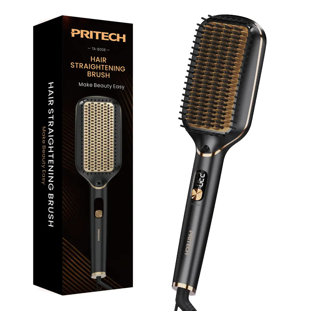 Yes, the PRITECH Hair Straightening Brush works well on thick hair. The 3.3-inch ultra-wide heating plate with even heat distribution allows you to style more hair at once, making it efficient for thick hair. With adjustable temperatures up to 450°F and ionic technology, it can handle various hair types including thick hair while reducing frizz.