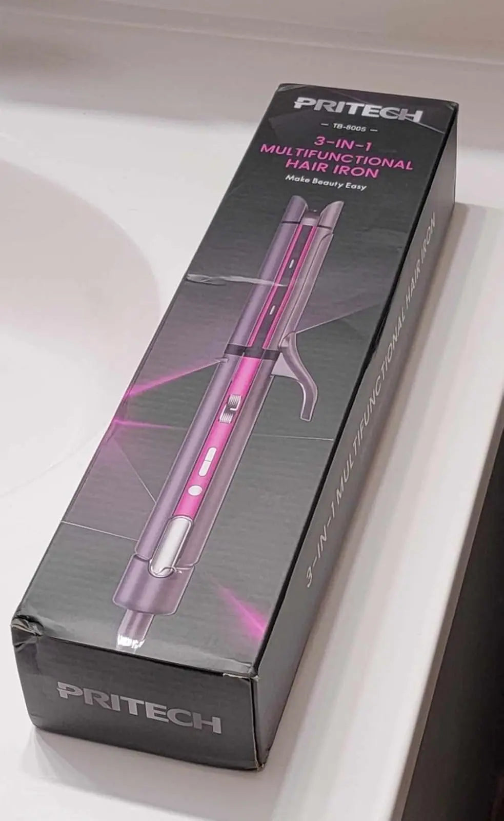 PRITECH 3-in-1 hair tool (straightener/curler/crimper) creates endless styles, heats fast, compact & versatile for salon-quality results.