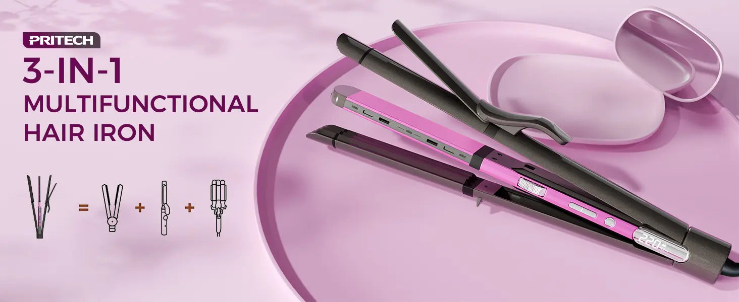 With its innovative 3-in-1 multifunctional design, the PRITECH hair straightener, curling iron, and crimper tool lets you create endless hair styles—sleek straight looks, soft curls, beach waves, or defined crimps.