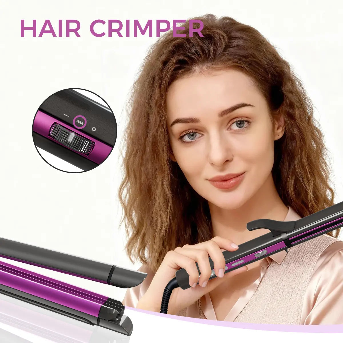 Designed for global travel, this 3-in-1 flat iron curling iron and crimper supports dual voltage (100–240V) and is lightweight and portable.hair crimper includes a smart auto lock feature that activates after 7 seconds of inactivity to prevent accidental button presses or temperature changes.