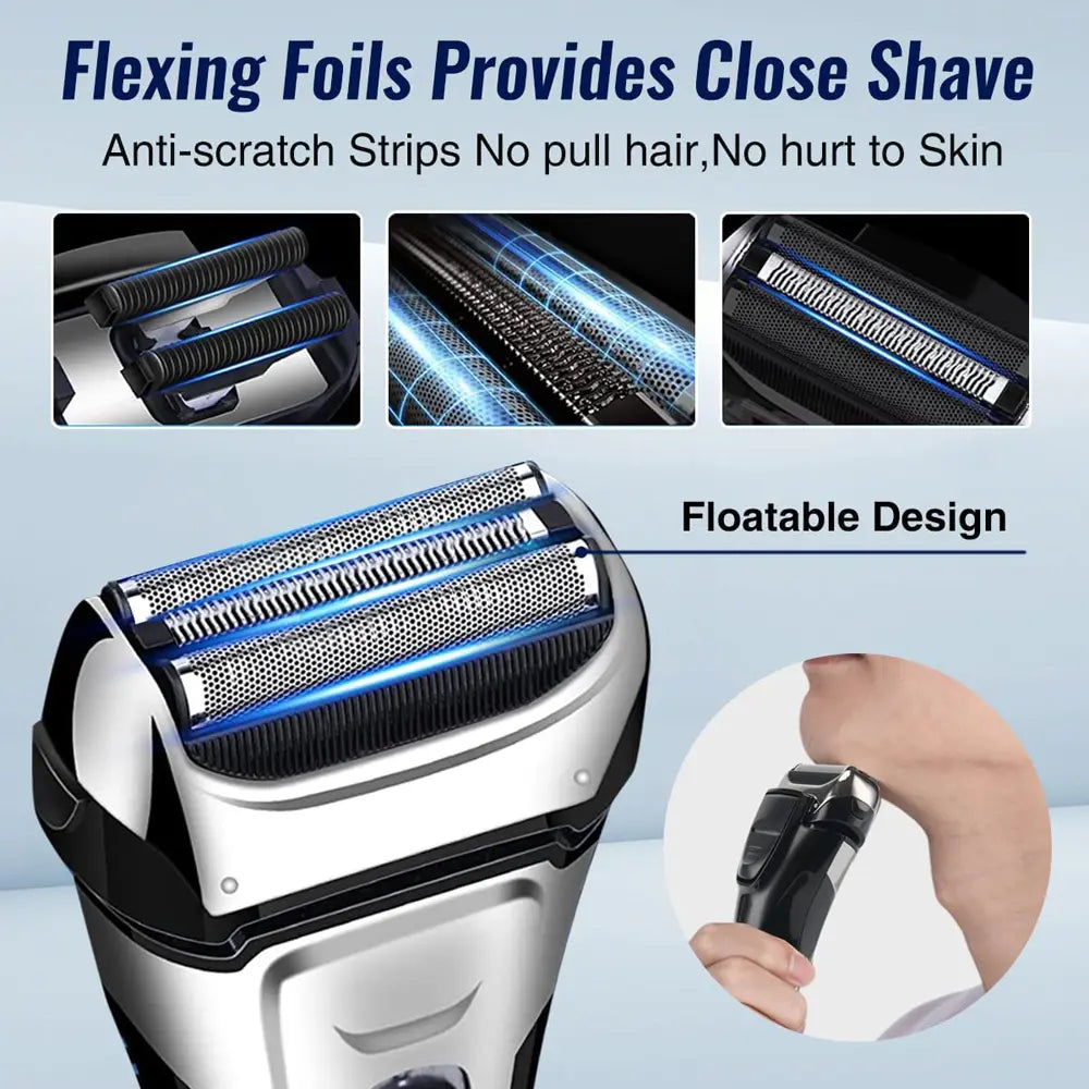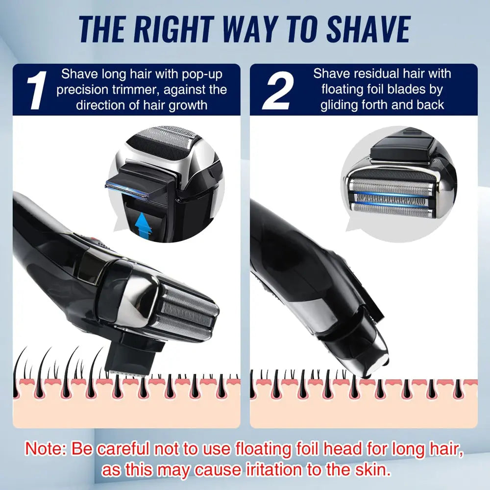 The electric razor for men that you can shave with foam, gel, You can conveniently rinse the shaver head under running water for easy and hygienic cleaning.This waterproof men's electric shaver is perfect for traveling on busines
