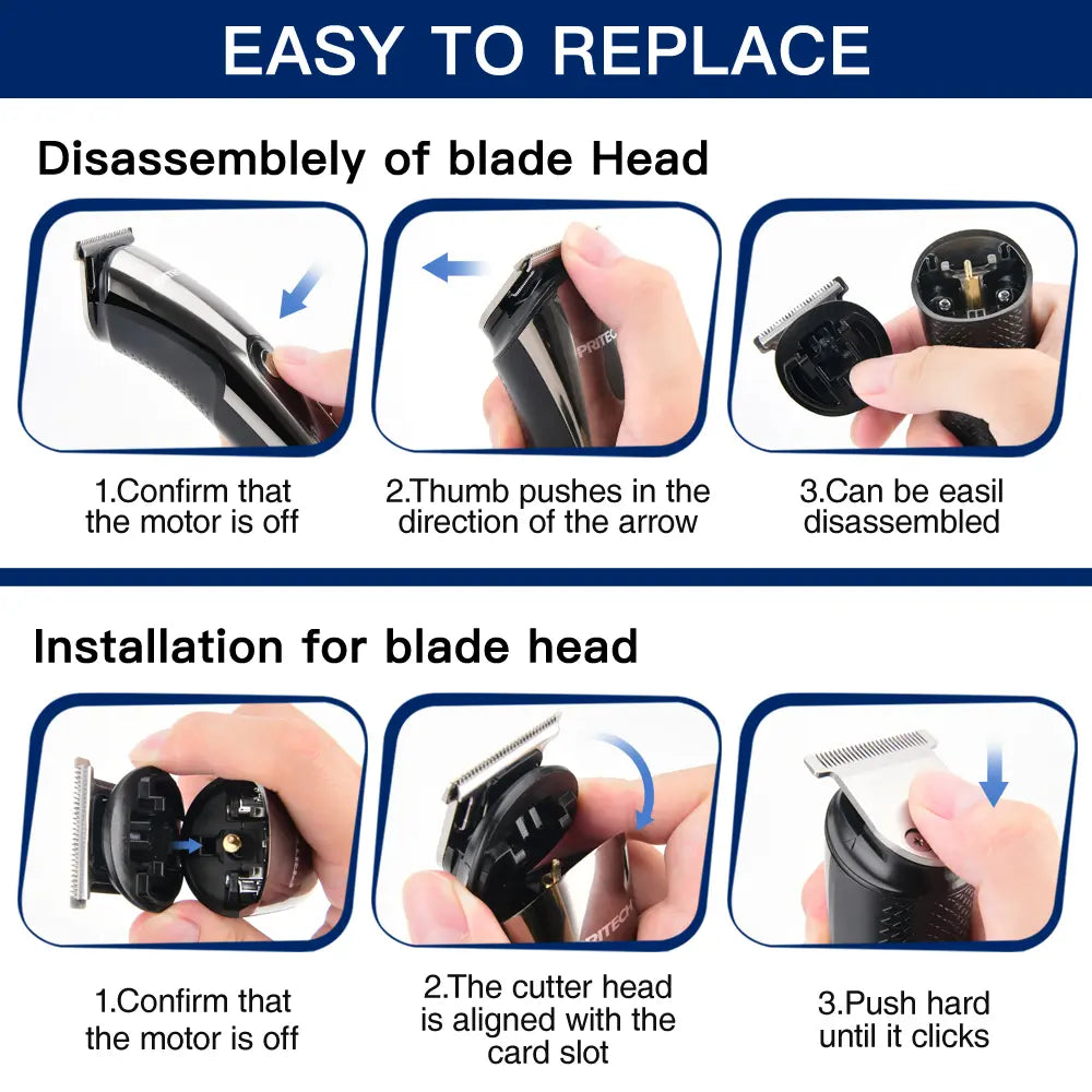 Zero Irritation, Maximum Power | Upgraded low-noise motor. Surgical-grade stainless steel blades with precision gap → close trim + low friction heat (no skin burns). -