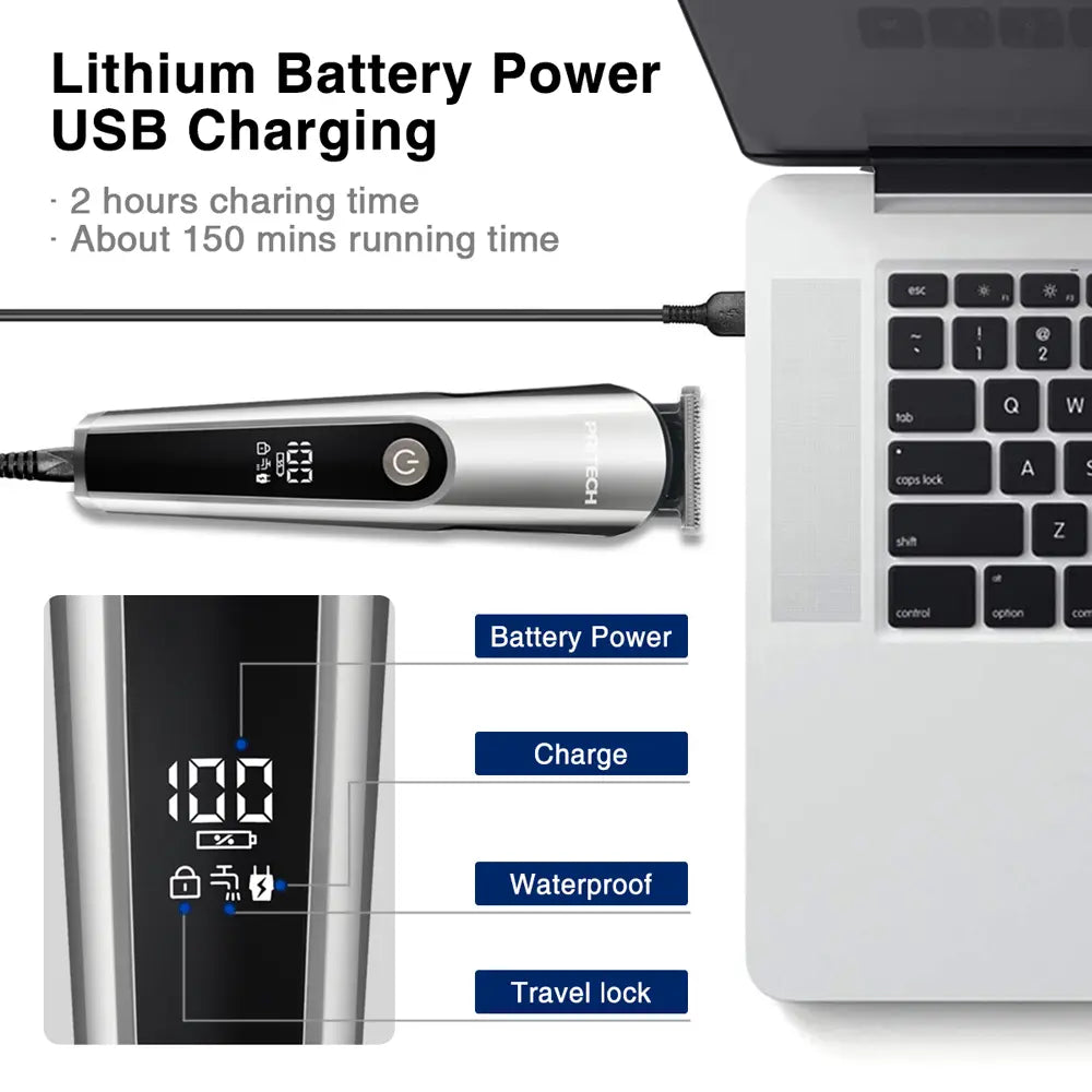 Charge Smarter, Groom Longer: 2hr USB charge → 150min cordless use | LED screen: Real-time battery % | Travel lock: Hold power to lock -
