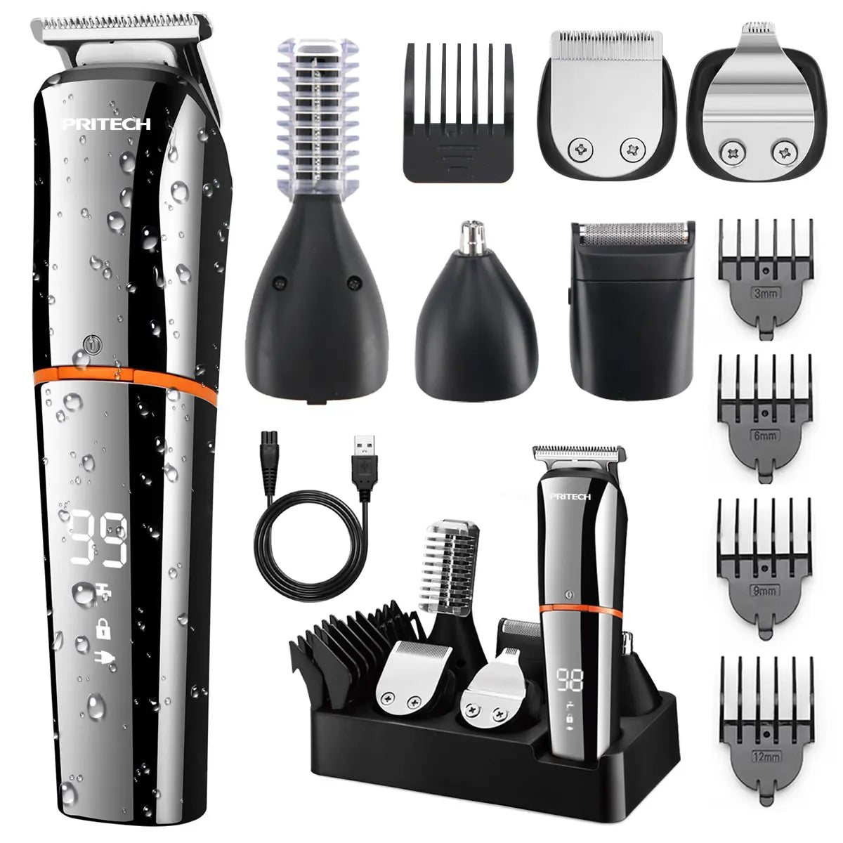 Offers a solution for your grooming needs,Beard trimmer,Hair Trimmer,Body Trimmer, Precision Trimmer, Nose Trimmer, and Micro Shaver in one versatile package. Designed to cater to various styling preferences. Grooming functions into a single device, saving you both money and space.