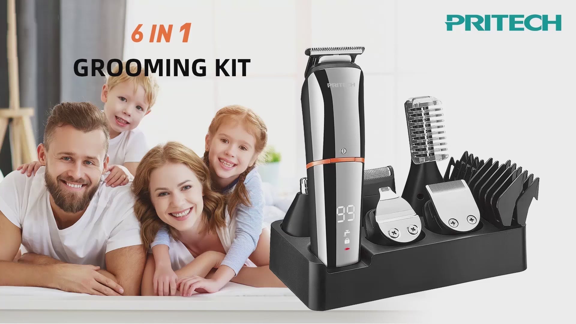 Beard/Hair/Body/Precision/Nose/Micro Shaver in one device for multi-scene grooming, space & cost efficient.