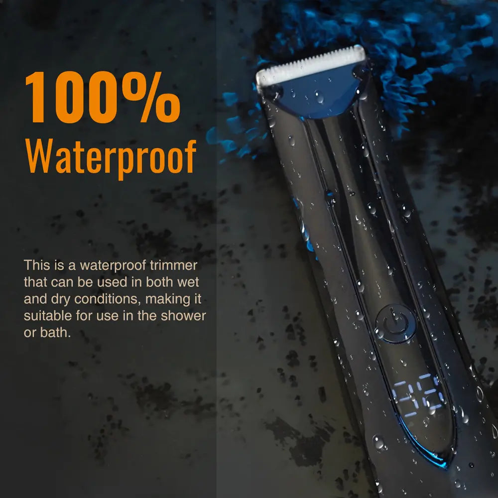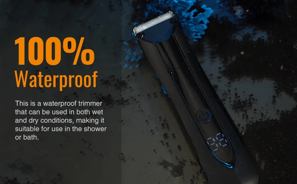Wet/Dry Convenience | Fully Water Resistant for shower use. Water rinses hair debris instantly. Tip: Hold flat against skin; press power 3s to start. -